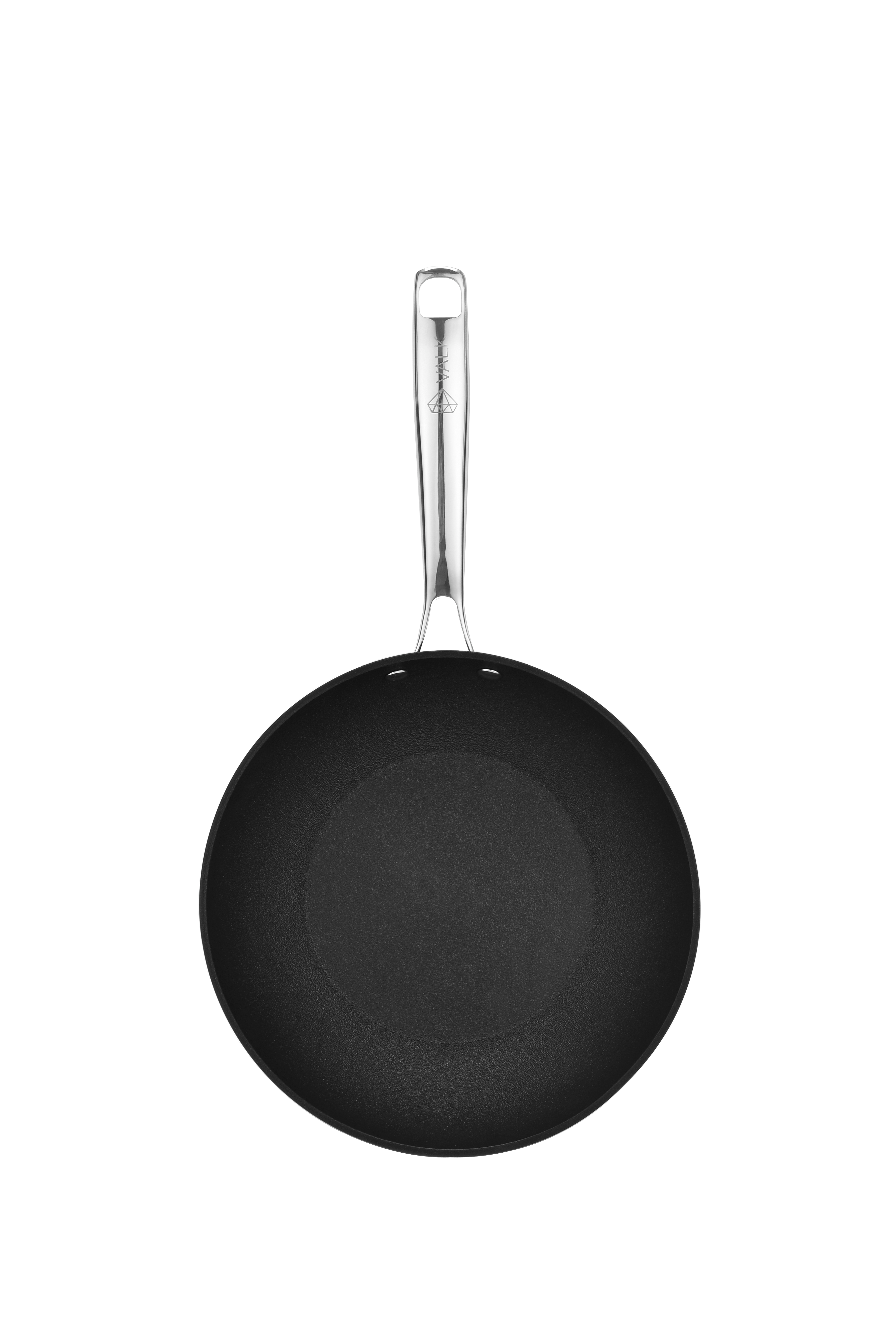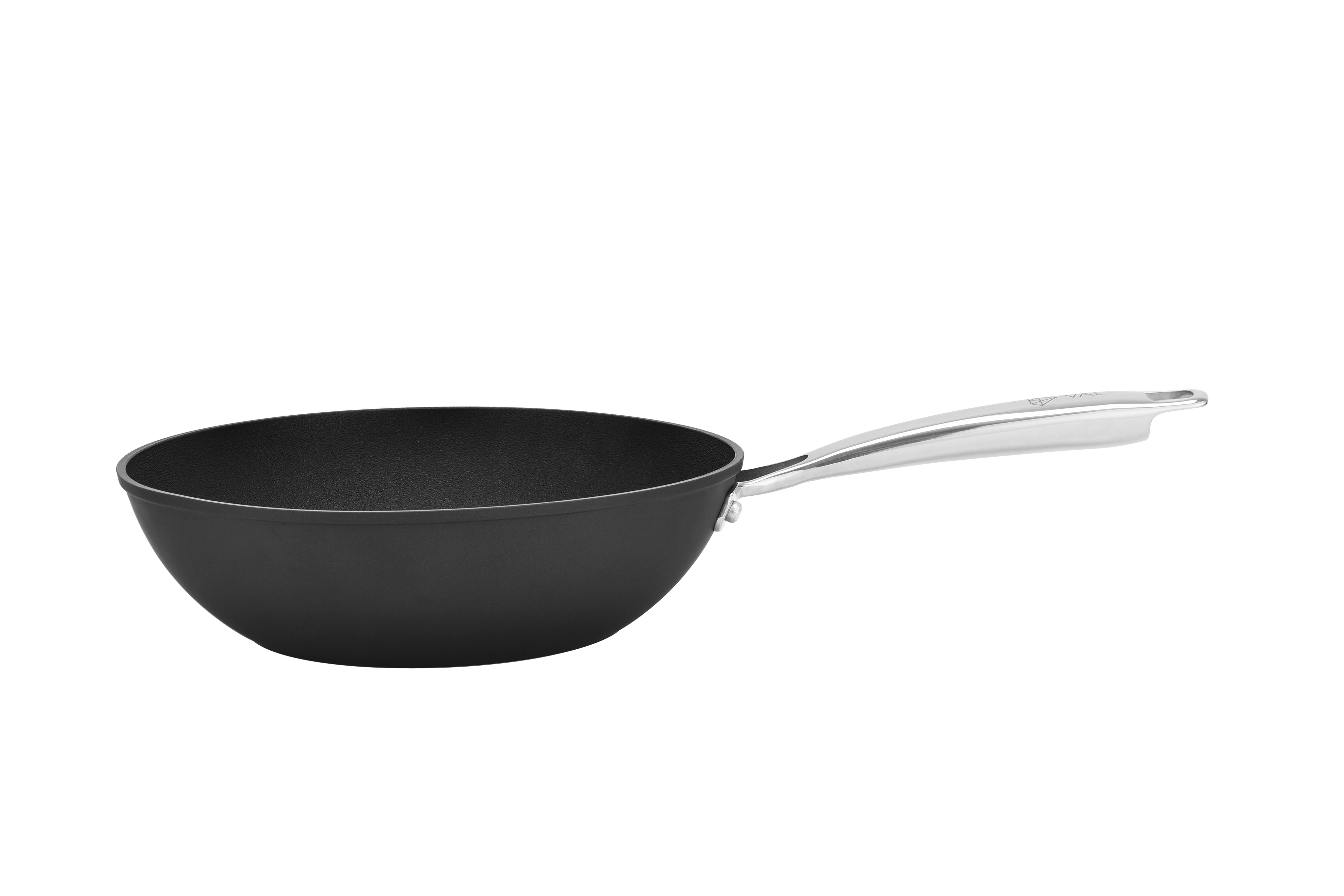 Deze wokpan van 28 cm is gemaakt voor wie graag op hoge temperatuur kookt. Het diepe ontwerp van 8 cm geeft je genoeg ruimte om te roerbakken zonder te morsen. Dankzij de aluminium body warmt de pan snel op en blijft de warmte goed verdeeld zodat je ingrediënten gelijkmatig garen.